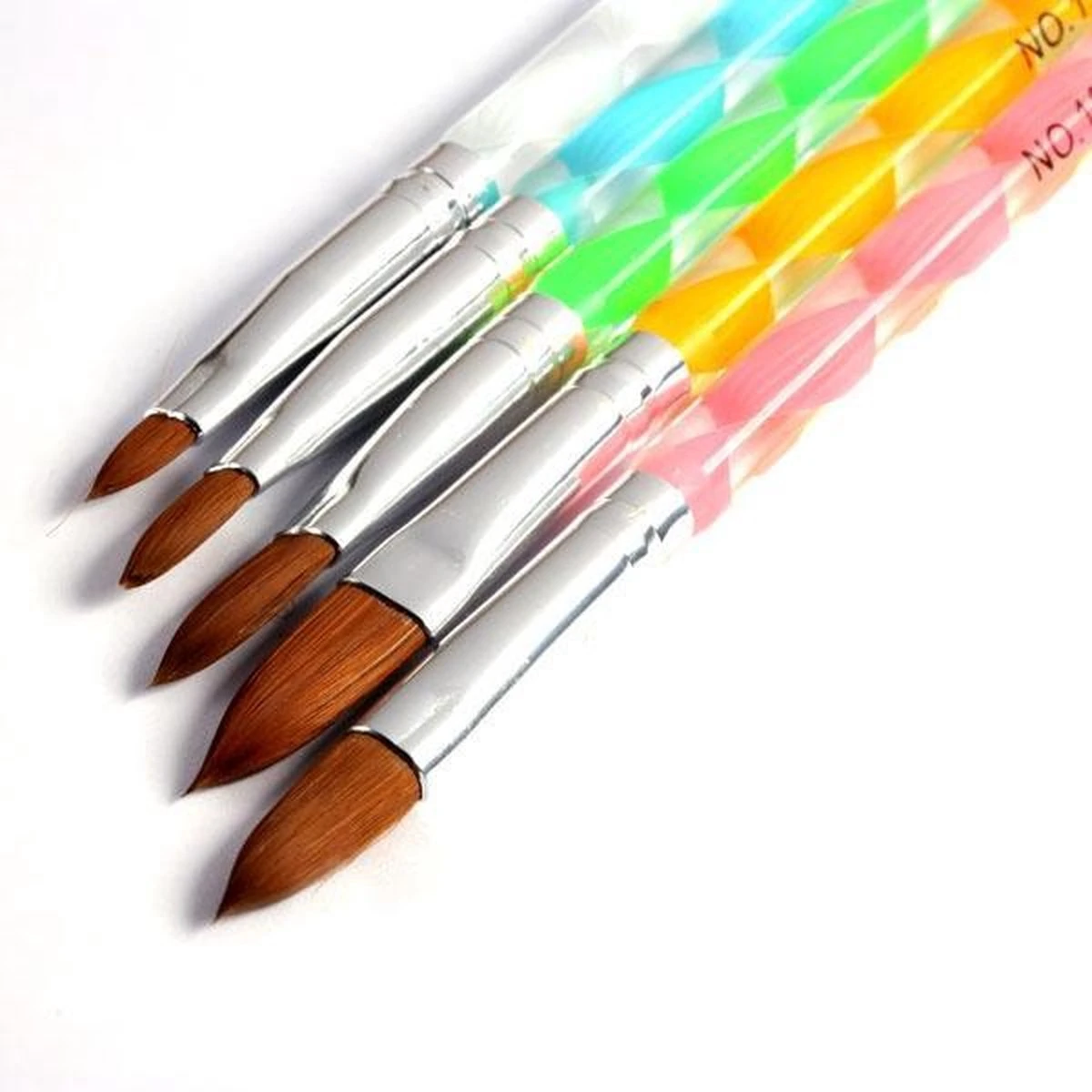 Deze acrylpenselen van buitengewone kwaliteit worden geleverd in vijf verschillende kleuren. Door de mooie en hoge kwaliteit kwasten gaan deze lang mee en blijft het resultaat gegarandeerd schitterend. De penselen zijn geschikt voor zowel nail art als het opzetten van acrylnagels.