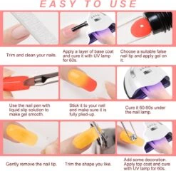 - 5. Plak het op je nagels en let op een volledige afdekking.