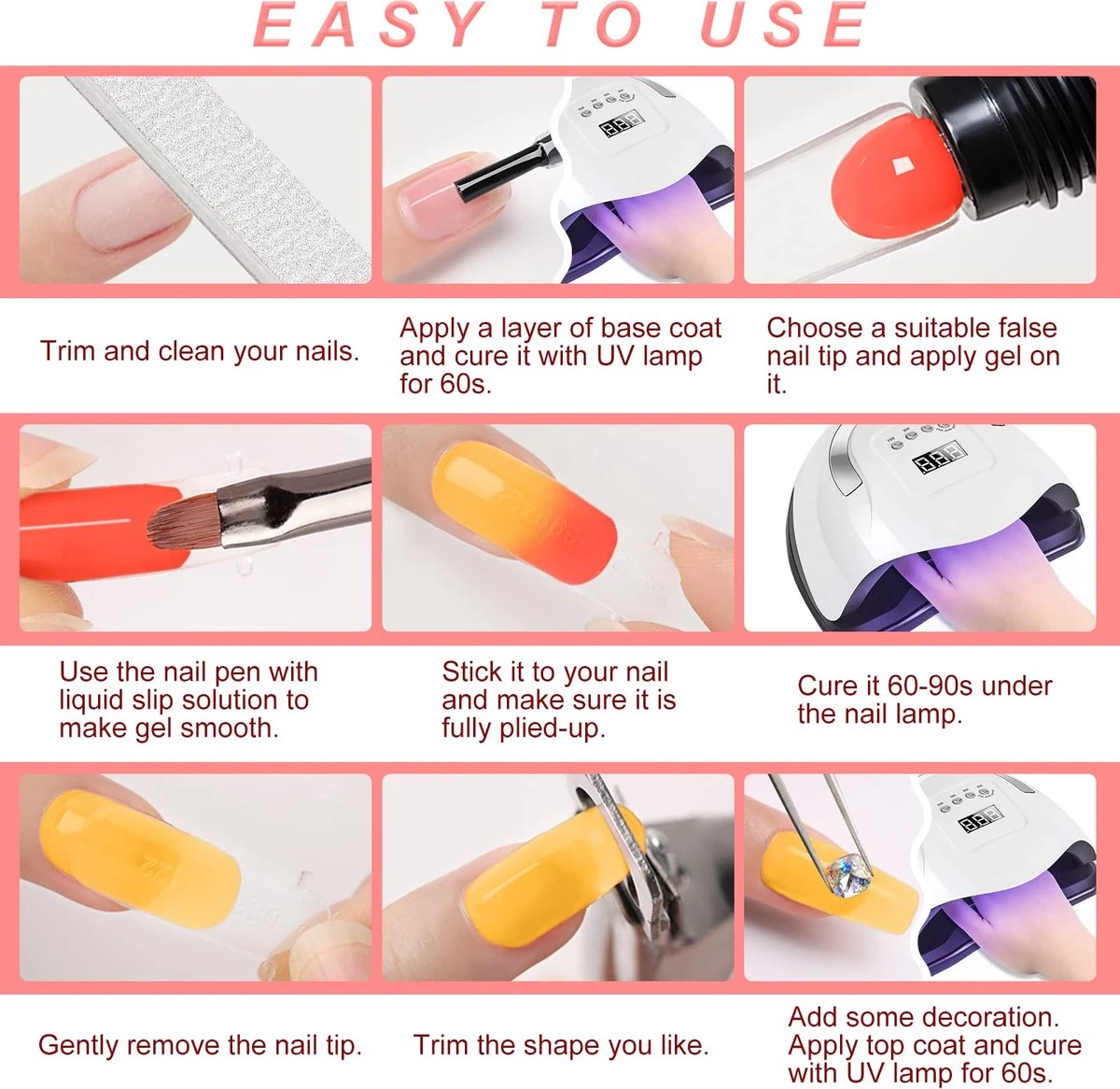 - 3. Kies een geschikte valse nagelpunt en breng de gel erop aan.