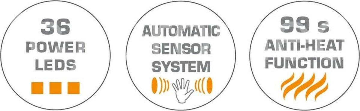• – Automatic-Sensor-System: in- en uitschakelen door geïntegreerde infrarood sensor.